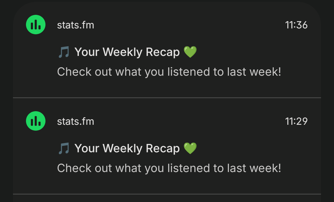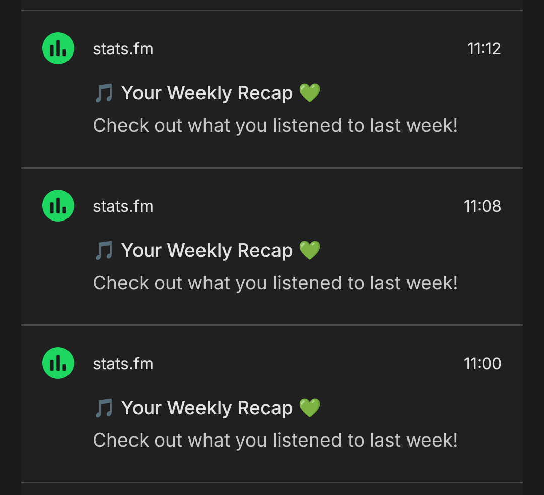 Does anyone know what might be causing this? I was aware my weekly recap was ready from the first notification, so I'm not sure I needed 5 to remind me 🫠